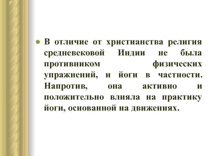 упражнений, и йоги в частности. Напротив, она активно и положительно влияла на практику йоги, основанной на движениях.