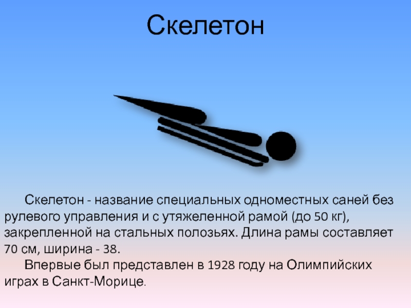 Скелетон - название специальных одноместных саней без рулевого управления и с