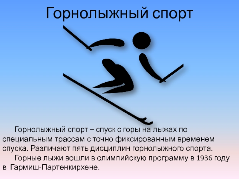 Горнолыжный спорт – спуск с горы на лыжах по специальным