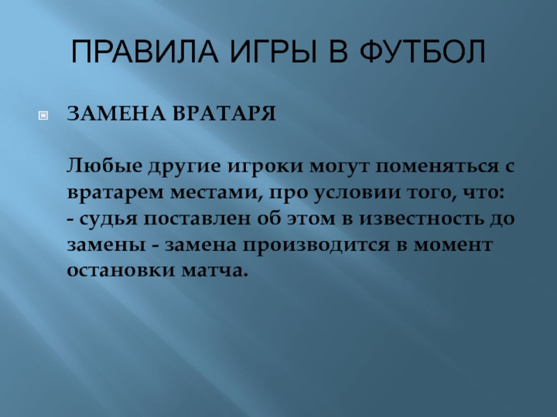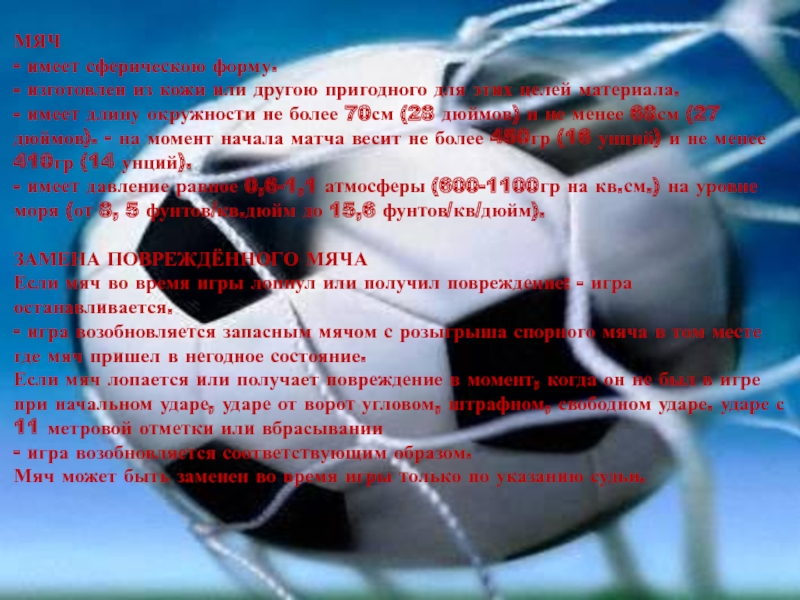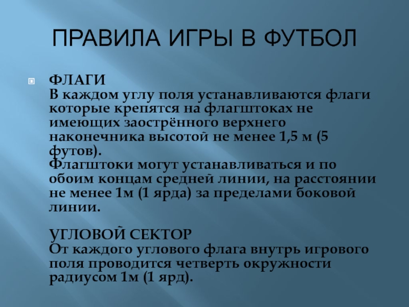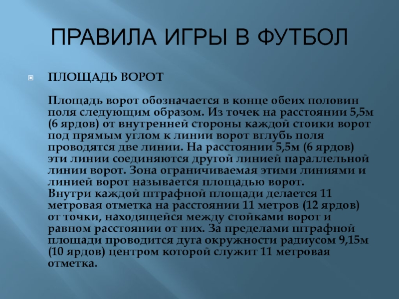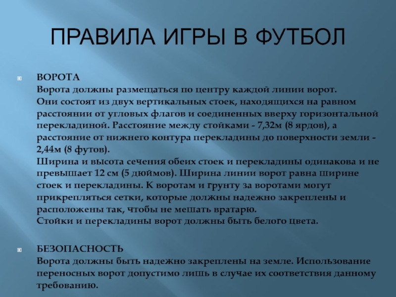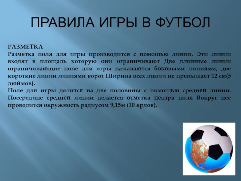 Слайд 12ПРАВИЛА ИГРЫ В ФУТБОЛ