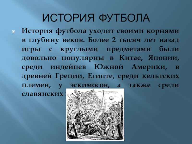 Слайд 3ИСТОРИЯ ФУТБОЛА