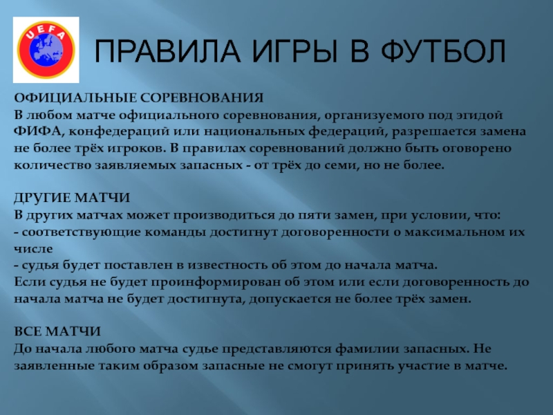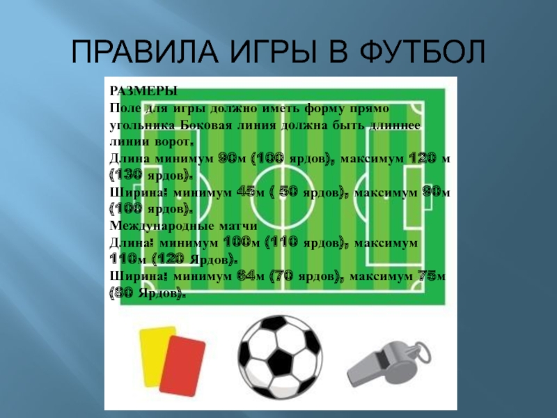 Слайд 10ПРАВИЛА ИГРЫ В ФУТБОЛ