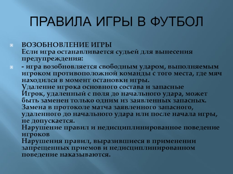Слайд 24ПРАВИЛА ИГРЫ В ФУТБОЛ