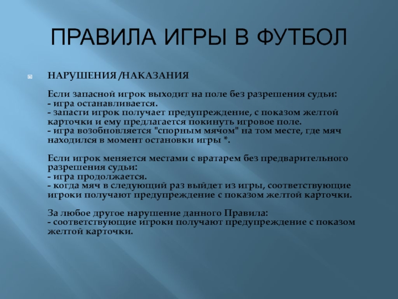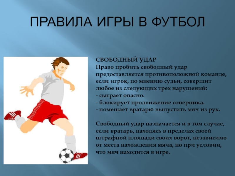 Слайд 20ПРАВИЛА ИГРЫ В ФУТБОЛ