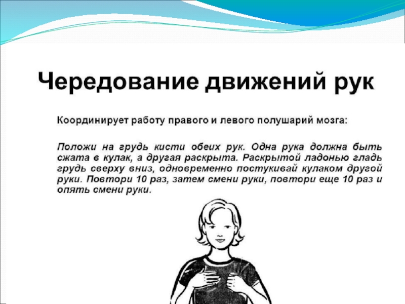 - вверх — вниз, т. е. левой рукой вверх, правой рукой — вниз, и наоборот;