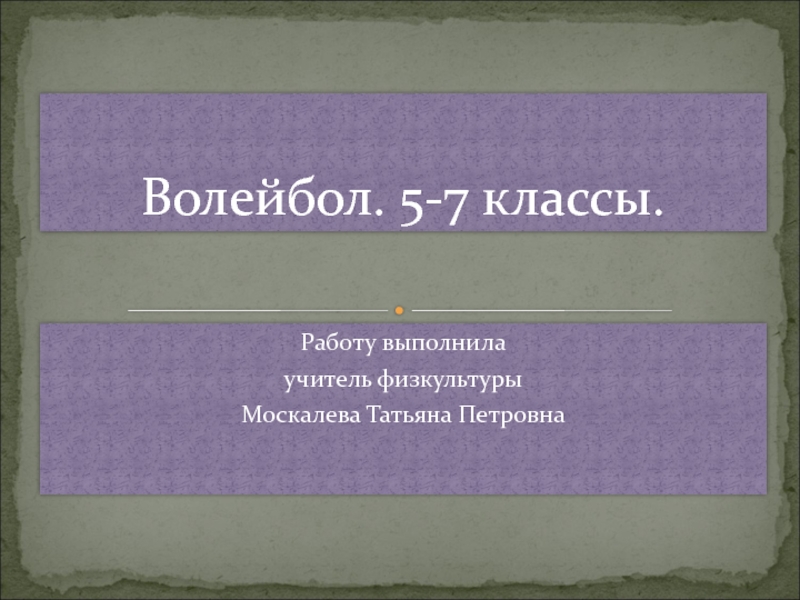 Работу выполнила учитель физкультурыМоскалева Татьяна ПетровнаВолейбол. 5-7 классы.
