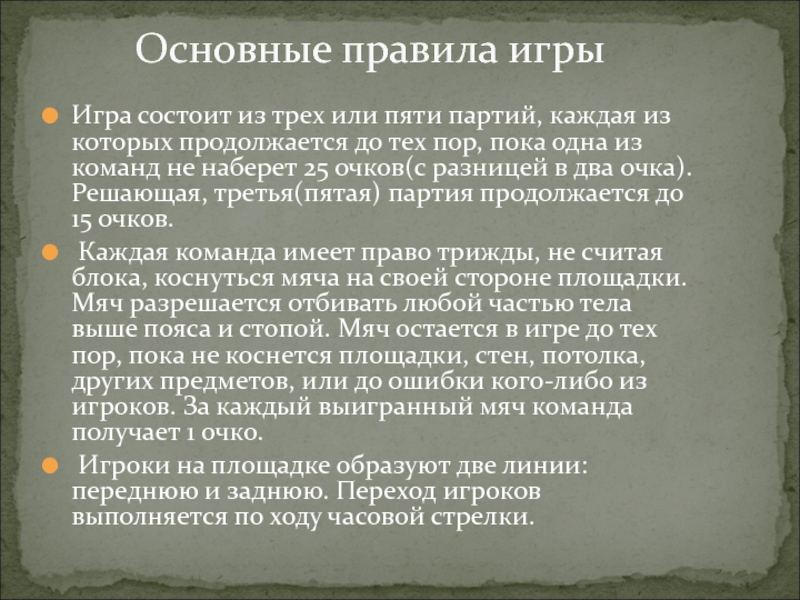 Слайд 6Игра состоит из трех или пяти партий, каждая из которых продолжается