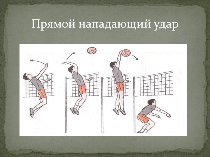 Слайд 18Прямой нападающий удар – один из самых распространенных приемов в технике