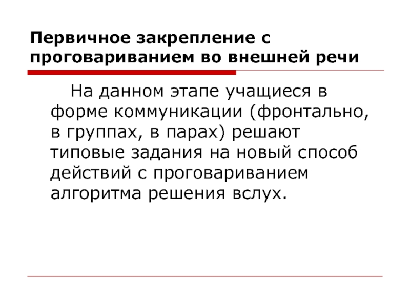 Слайд 36Первичное закрепление с проговариванием во внешней речи