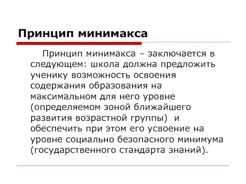 Принцип минимакса – заключается в следующем: школа должна предложить ученику