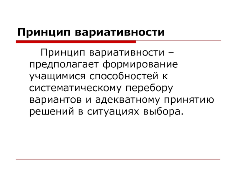 Принцип вариативности – предполагает формирование учащимися способностей к систематическому перебору