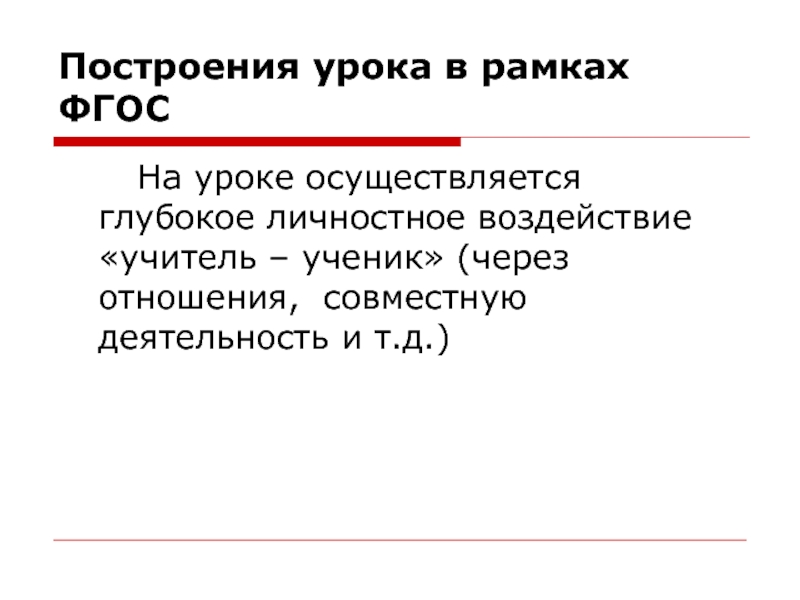 На уроке осуществляется глубокое личностное воздействие «учитель