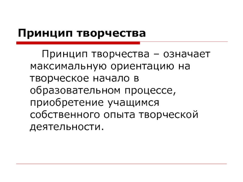 Принцип творчества – означает максимальную ориентацию на творческое начало в