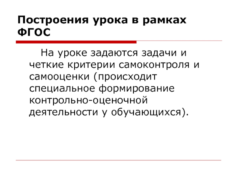 самоконтроля и самооценки (происходит специальное формирование контрольно-оценочной деятельности у обучающихся).