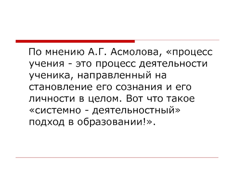 направленный на становление его сознания и его личности в целом. Вот что такое «системно - деятельностный» подход в образовании!».