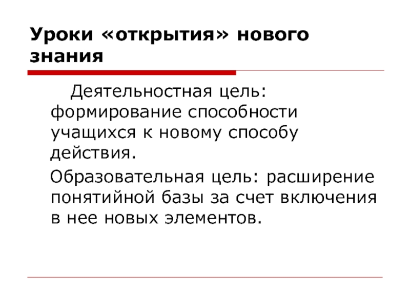 Образовательная цель: расширение понятийной базы за счет включения в нее новых элементов.