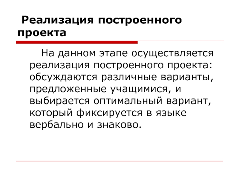 различные варианты, предложенные учащимися, и выбирается оптимальный вариант, который фиксируется в языке вербально и знаково.