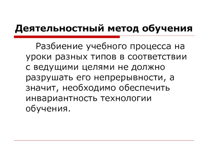 с ведущими целями не должно разрушать его непрерывности, а значит, необходимо обеспечить инвариантность технологии обучения.