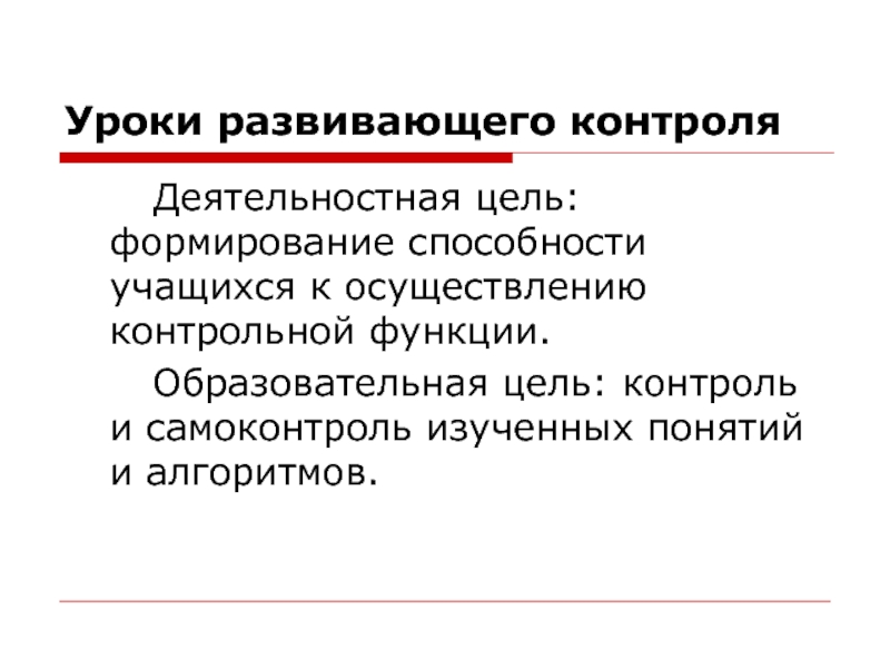 Деятельностная цель: формирование способности учащихся к осуществлению контрольной функции.