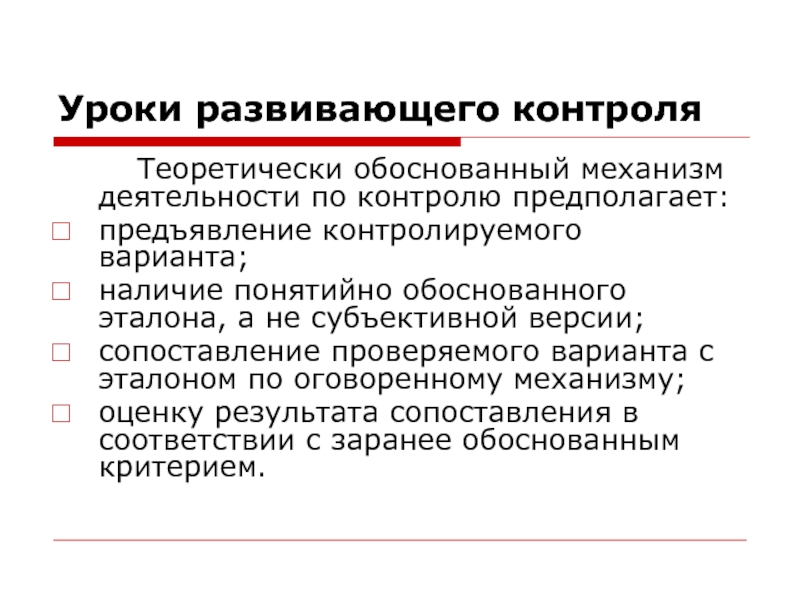 Теоретически обоснованный механизм деятельности по контролю предполагает: