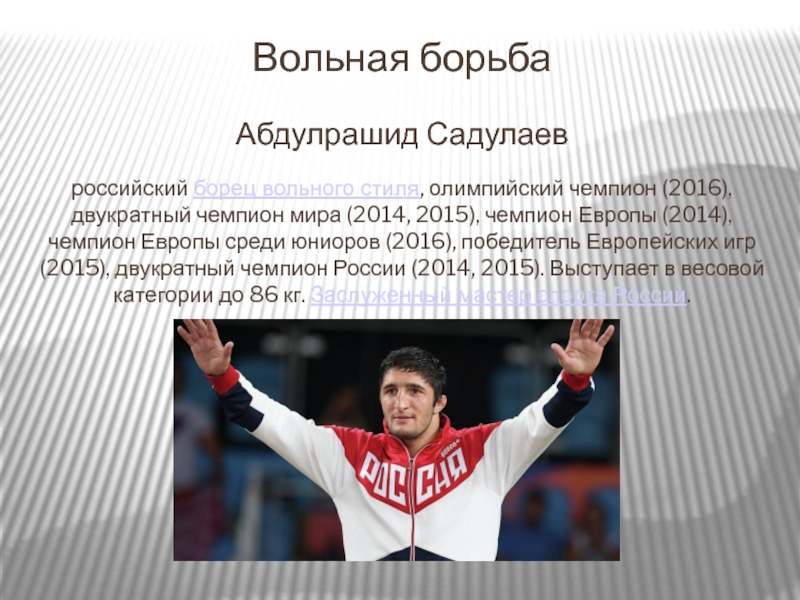 российский борец греко-римского стиля, чемпион летних Олимпийских игр 2016 года. Чемпион России, призёр Кубка мира, победитель Европейских игр 2015 года, Заслуженный мастер спорта России.