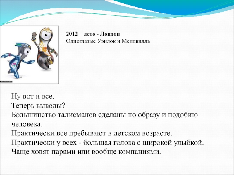 4.спрогнозировать фигуру талисмана и основной идеи будущей Олимпиады.