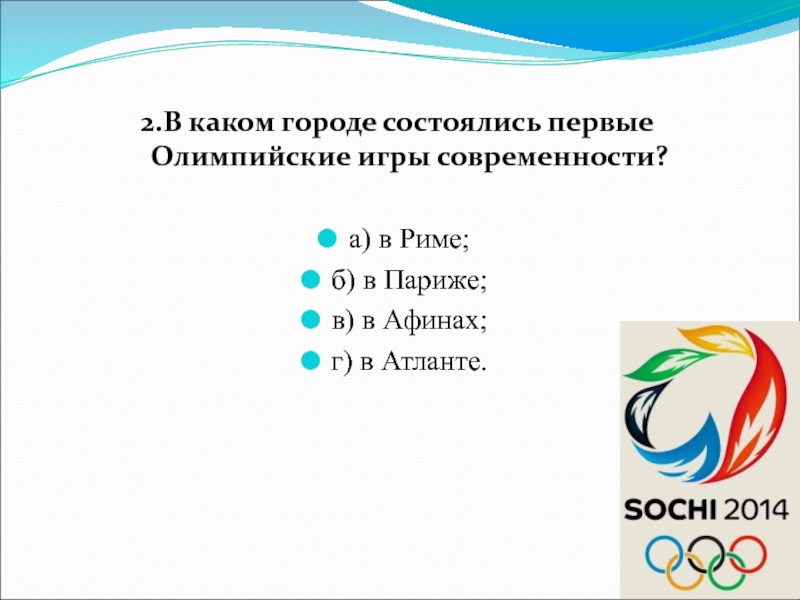 2.В каком городе состоялись первые Олимпийские игры современности?