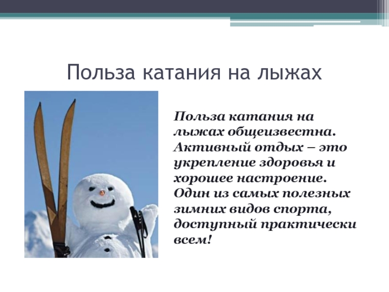 Польза катания на лыжах общеизвестна. Активный отдых –