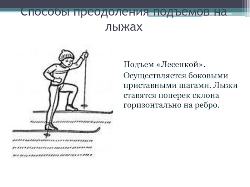 лыж, а другую отводит в сторону и, перенося на нее вес тела, приставляет к ней другую лыжу.