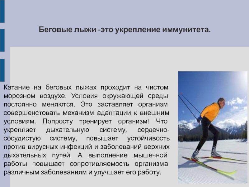 Слайд 5Беговые лыжи -это укрепление иммунитета.