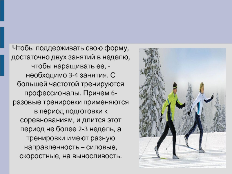Слайд 13Чтобы поддерживать свою форму, достаточно двух занятий в неделю, чтобы наращивать