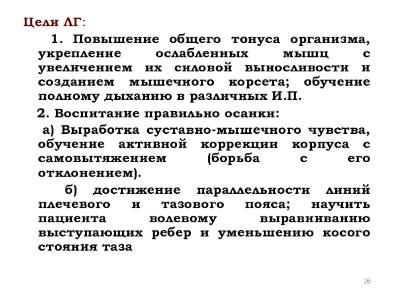 1. Повышение общего тонуса организма, укрепление ослабленных мышц