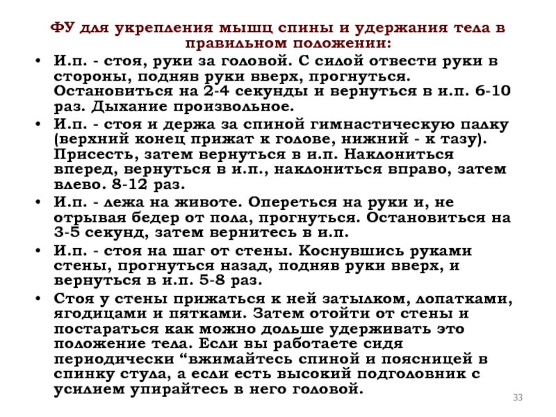 Слайд 33ФУ для укрепления мышц спины и удержания тела в правильном положении: