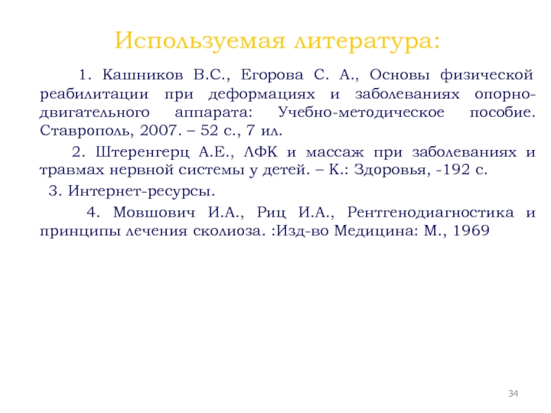 4. Мовшович И.А., Риц И.А., Рентгенодиагностика и принципы лечения сколиоза. :Изд-во Медицина: М., 1969