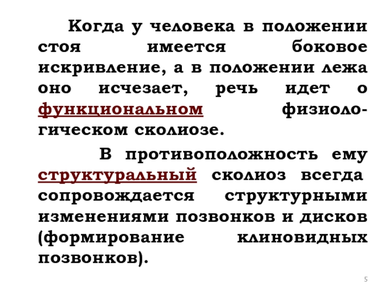 Слайд 5 Когда у человека в положении стоя имеется боковое