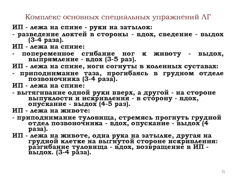 Слайд 31Комплекс основных специальных упражнений ЛГ