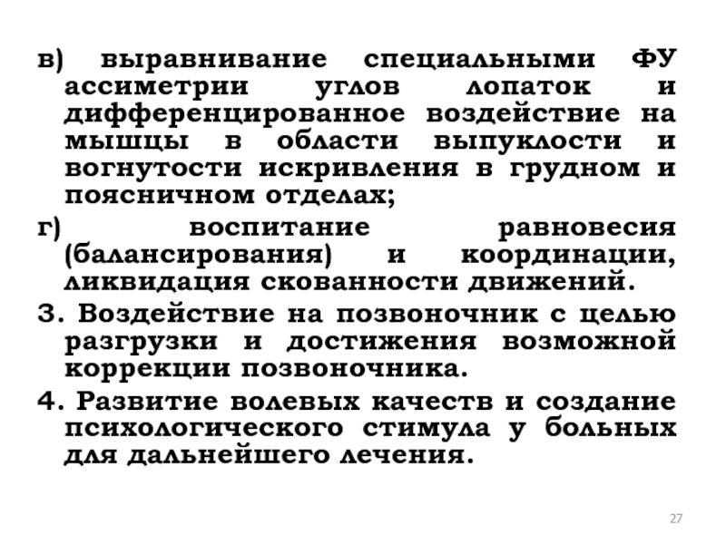 Слайд 27в) выравнивание специальными ФУ ассиметрии углов лопаток и дифференцированное воздействие на