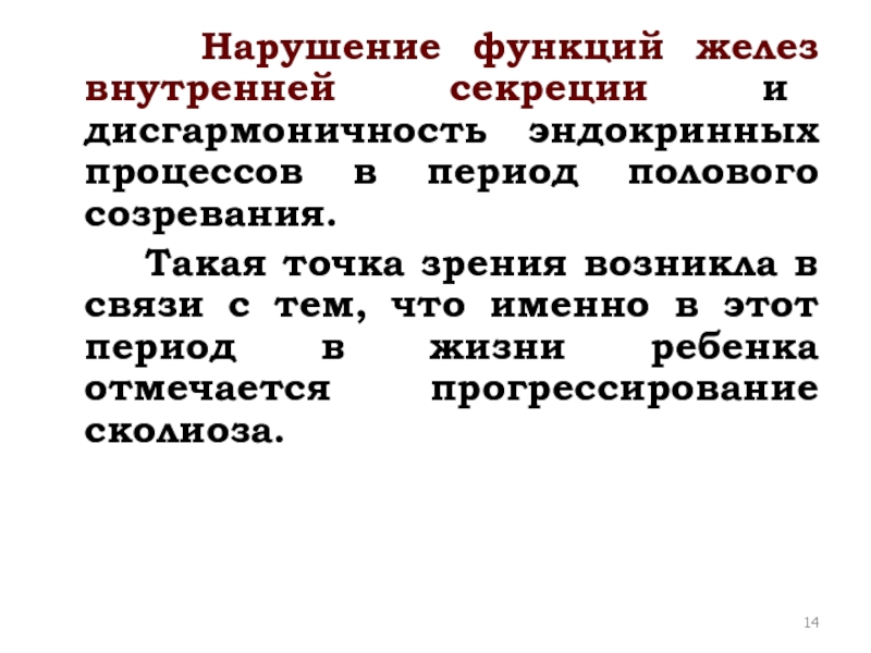 Слайд 14 Нарушение функций желез внутренней секреции и дисгармоничность эндокринных