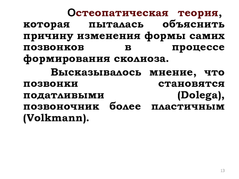 Слайд 13 Остеопатическая теория, которая пыталась объяснить причину изменения