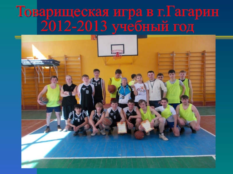 Слайд 11Товарищеская игра в г.Гагарин 2012-2013 учебный год