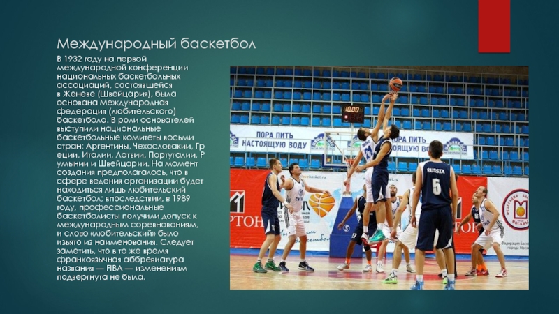 В 1932 году на первой международной конференции национальных баскетбольных ассоциаций, состоявшейся в Женеве (Швейцария),