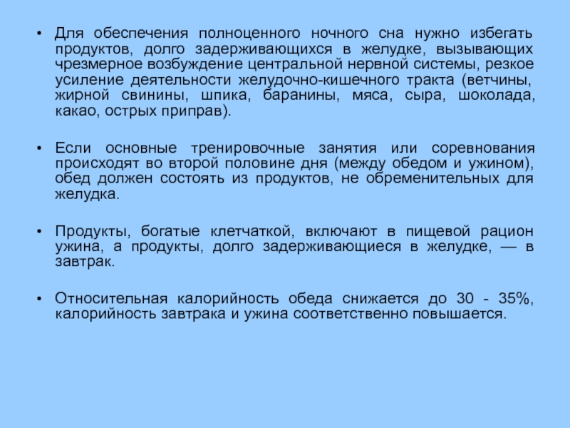 Для обеспечения полноценного ночного сна нужно избегать продуктов, долго задерживающихся в