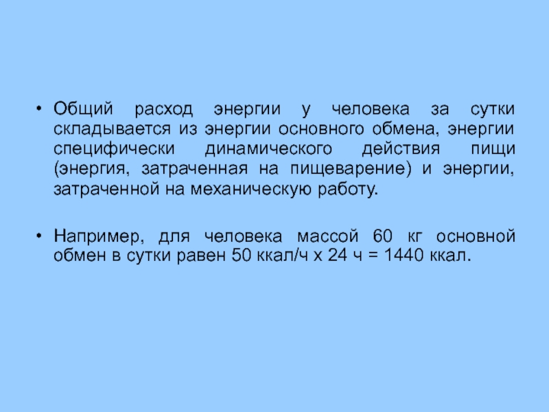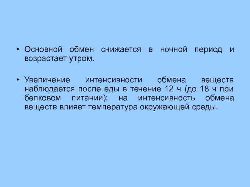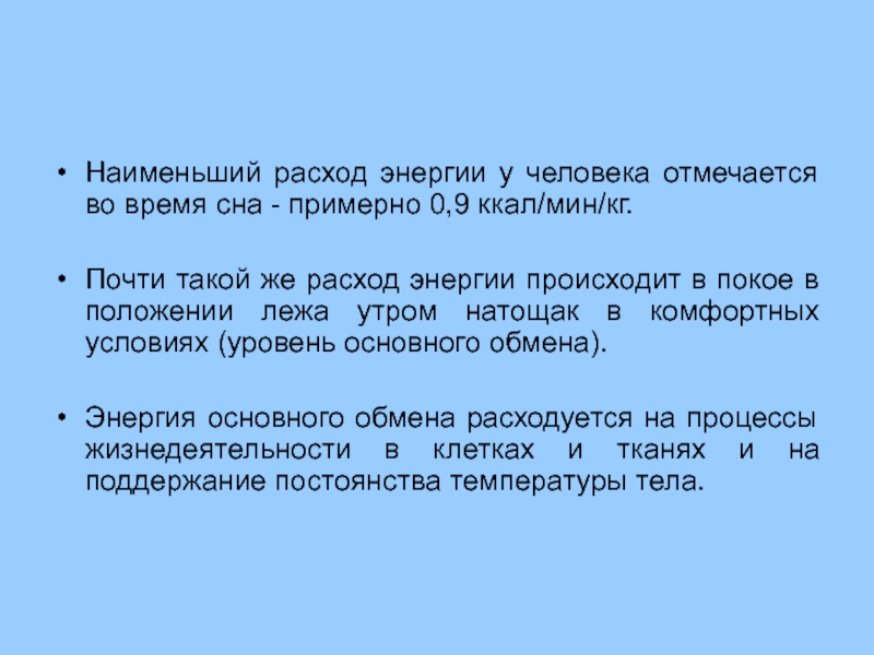 Основной обмен отражает минимальный уровень расхода энергии для поддержания жизнедеятельности организма.