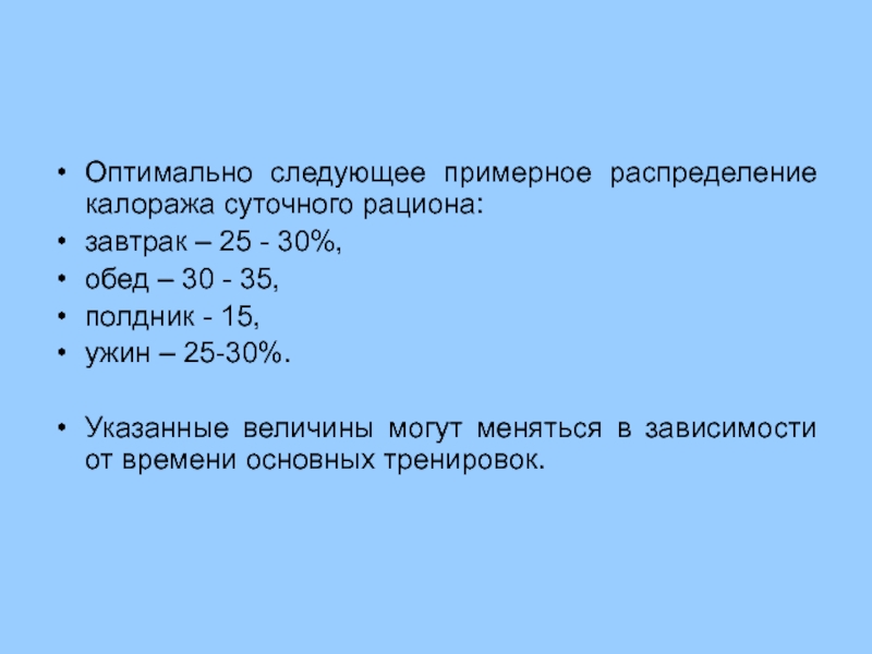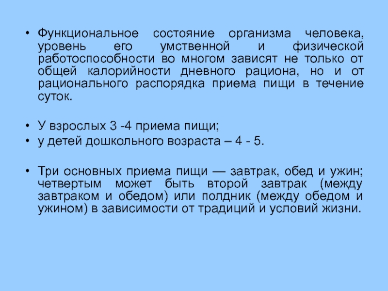 Распределение суточного пищевого рациона в течение дня зависит от того, на