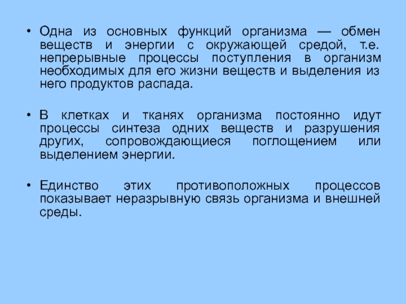 Единство этих противоположных процессов показывает неразрывную связь организма и внешней среды.
