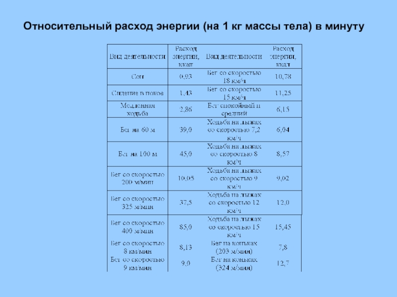 1. Энерготраты при занятиях физкультурой и спортом