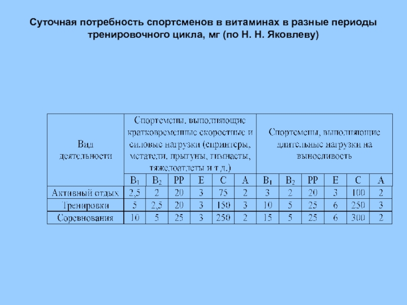 Перед тренировочными сборами и крупными соревнованиями необходима комплексная витаминизация.