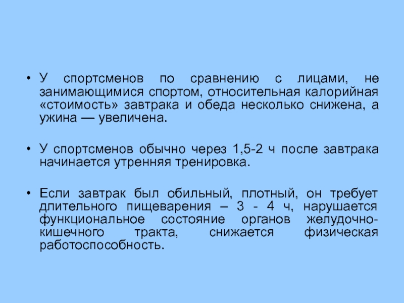 обеда, подготовка организма спортсмена к предстоящим нагрузкам.