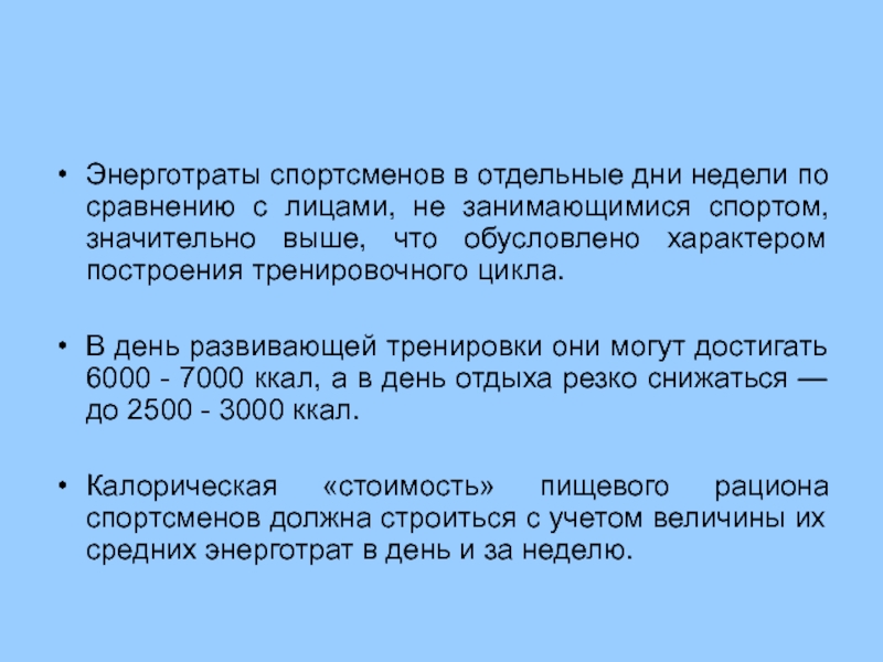 чем у их сверстников, не занимающихся спортом, особенно в период тренировок, связанных с развитием скоростно-силовых качеств, необходимостью увеличения мышечной массы, а также при выполнении напряженных физических нагрузок.