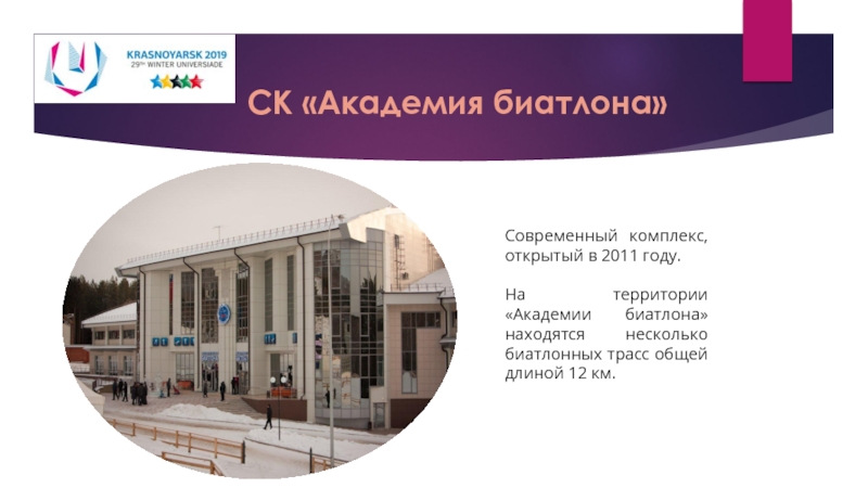 биатлона» находятся несколько биатлонных трасс общей длиной 12 км.